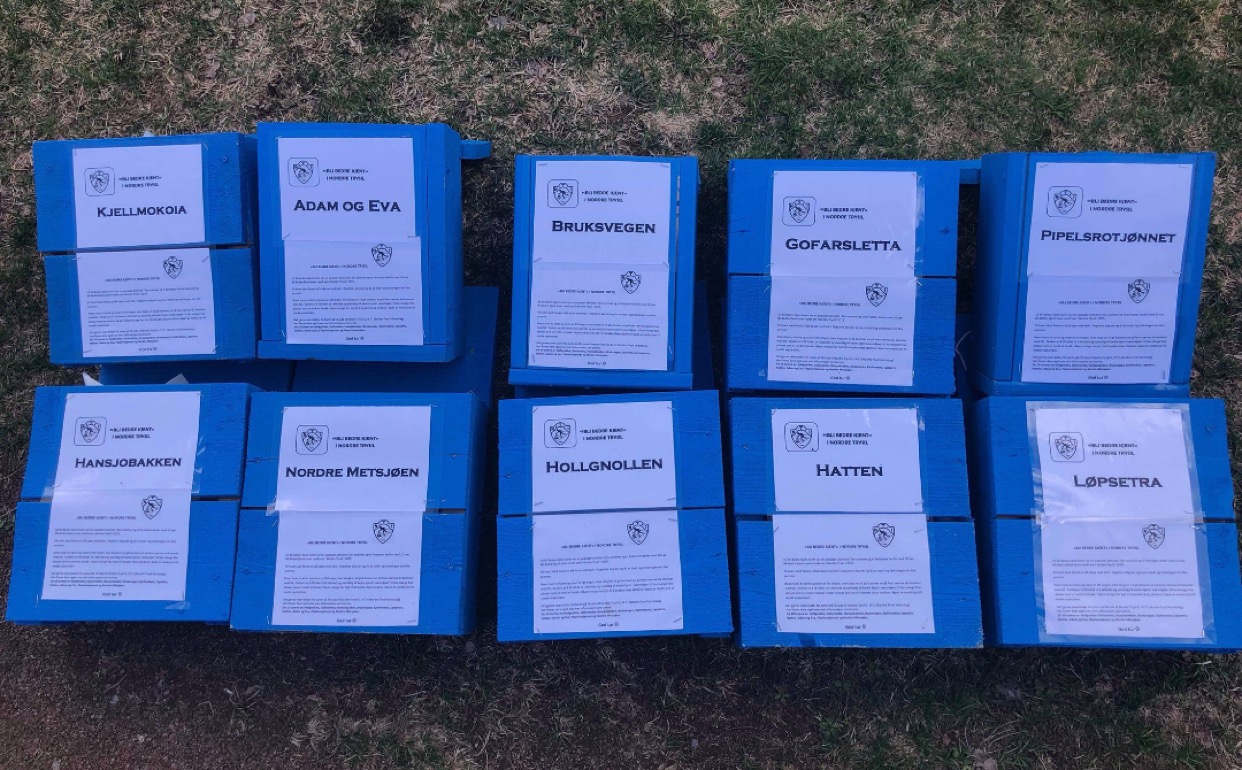 Første kasse er på tur ut og resten vil komme på plass i tur og orden. Komiteen kommer med mer informasjon etterhvert som det blir klart. Alle kasser skal være på plass til pinsen i alle fall.