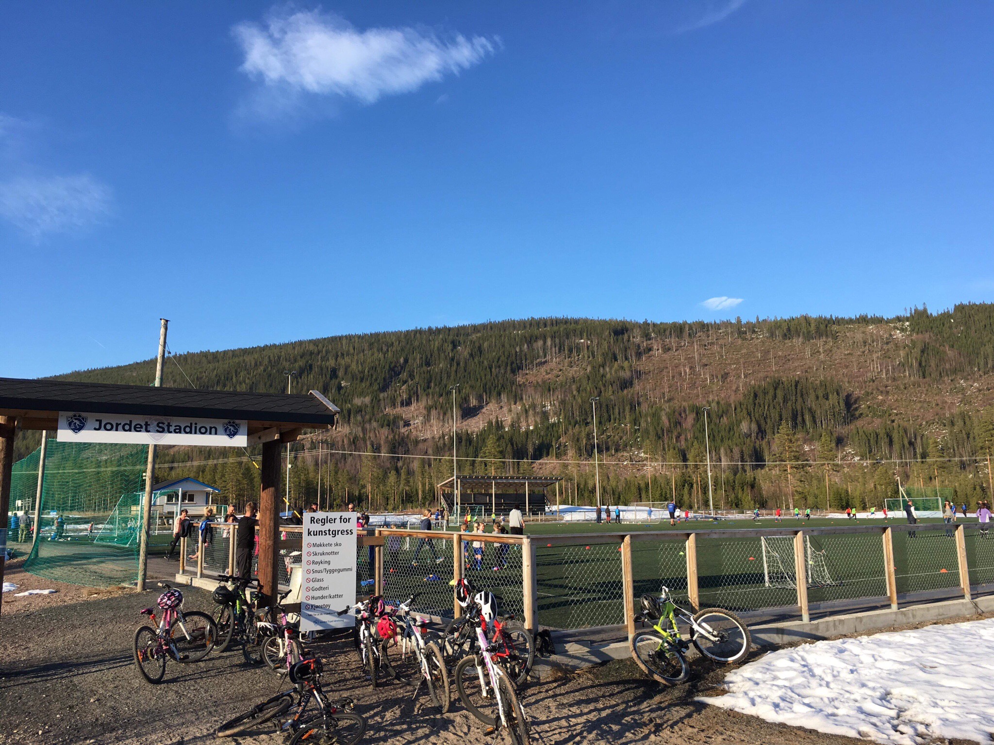 I dag, 22.april, startet utesesongen for de unge fotballspillerne i Nordre Trysil. En sesongstart i mange varmegrader og shortsen kunne brukes på første utetreninga. Det skjer ikke hvert år.